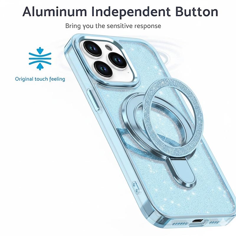 Etui z brokatem do iPhone 15 Pro łączy w sobie styl i ochronę, elegancki blask i niezawodną trwałość na co dzień. Wykonane z wysokiej jakości materiałów i wyposażone we wbudowaną podpórkę z metalowym pierścieniem, etui zapewnia bezpieczeństwo, funkcjonalność i modny wygląd telefonu przez cały dzień.
