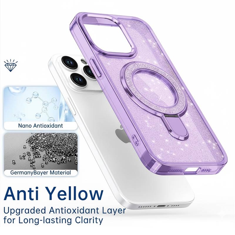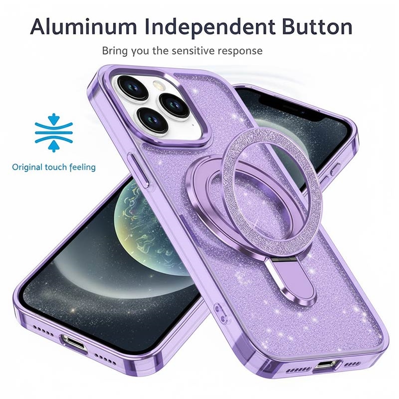 Etui z brokatem do iPhone 15 Pro łączy w sobie styl i ochronę, elegancki blask i niezawodną trwałość na co dzień. Wykonane z wysokiej jakości materiałów i wyposażone we wbudowaną podpórkę z metalowym pierścieniem, etui zapewnia bezpieczeństwo, funkcjonalność i modny wygląd telefonu przez cały dzień.