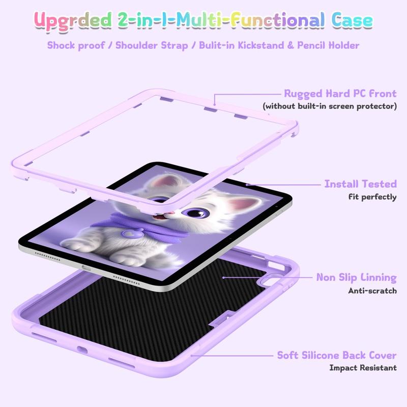 Hybrydowe etui Słodki kot z podpórką, paskiem na ramię i uchwytem na rysik do iPad (2022), iPad (2025)