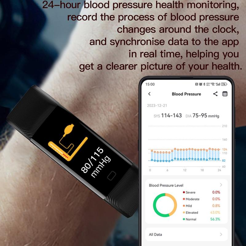 Inteligentna bransoletka F71 oferuje wszechstronne funkcje monitorowania zdrowia, w tym tętno, poziom tlenu we krwi (SpO₂), ciśnienie krwi i temperaturę ciała. Idealna do monitorowania samopoczucia przez cały dzień.