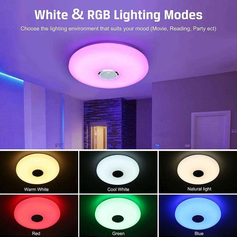 Inteligentna muzyczna lampa sufitowa - 36-watowa lampa LED RGB zmieniająca kolory z głośnikiem Bluetooth, pilotem i efektem gwiaździstego nieba