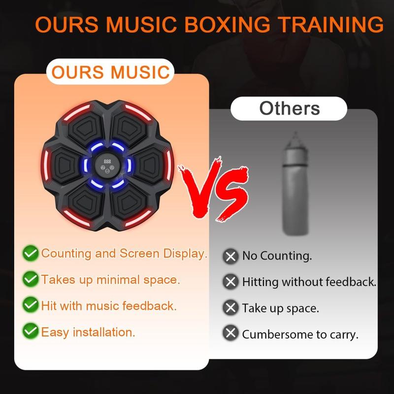 Wyróżniającą cechą tego trenażera bokserskiego jest funkcja synchronizacji z muzyką. Tarcza została zaprojektowana tak, aby łączyć się z kompatybilnymi urządzeniami, takimi jak telefony i tablety, dzięki czemu sesje treningowe są bardziej interaktywne i oparte na rytmie. Informacja zwrotna w postaci świateł LED pomaga kierować każdym uderzeniem, a punktacja w czasie rzeczywistym oraz wskazanie trafień dodają element grywalności, który pomaga utrzymać motywację użytkowników podczas ćwiczeń.