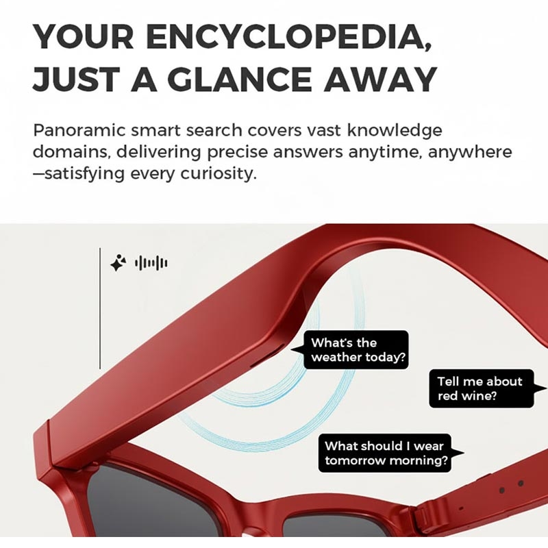 Funkcje oparte na sztucznej inteligencji - w tym rozpoznawanie obiektów, polecenia głosowe, interakcja dialogowa i tłumaczenie w czasie rzeczywistym - zwiększają wygodę i umożliwiają płynną komunikację w różnych językach. Podwójne głośniki z niezależnymi wzmacniaczami zapewniają bogaty, czysty dźwięk zarówno podczas odtwarzania muzyki, jak i rozmów telefonicznych, a mikrofony z redukcją szumów zapewniają wyraźną jakość głosu.