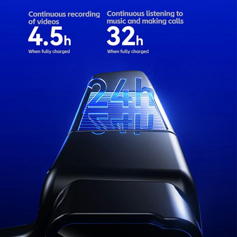 Aparat 2 MP nagrywa filmy w rozdzielczości 1080p przy 30 klatkach na sekundę i robi zdjęcia w rozdzielczości 1920 x 1080 z kątem widzenia 100 stopni po przekątnej, zapewniając wciągającą perspektywę. Półotwarta konstrukcja akustyczna zapewnia dźwięk bez ucisku na kanał słuchowy, dzięki czemu możesz zachować świadomość otoczenia podczas słuchania muzyki lub prowadzenia rozmów telefonicznych. Dzięki kompatybilności z Bluetooth 5.3, ładowaniu przez USB-C i praktycznym dodatkom, takim jak tryb PC-CAM i obsługa mobilnego OTG, jest to wszechstronna opcja smart-wear do pracy i codziennych przygód.