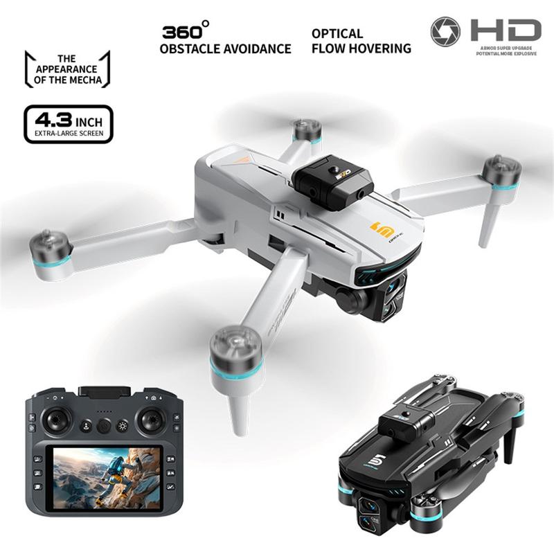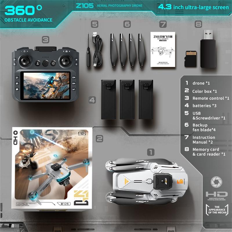 Inteligentny dron Z105 z podwójną kamerą, 4.3-calowym wyświetlaczem, kontrolerem i 3 bateriami - bezszczotkowy silnik Quadcopter do omijania przeszkód