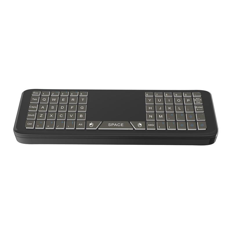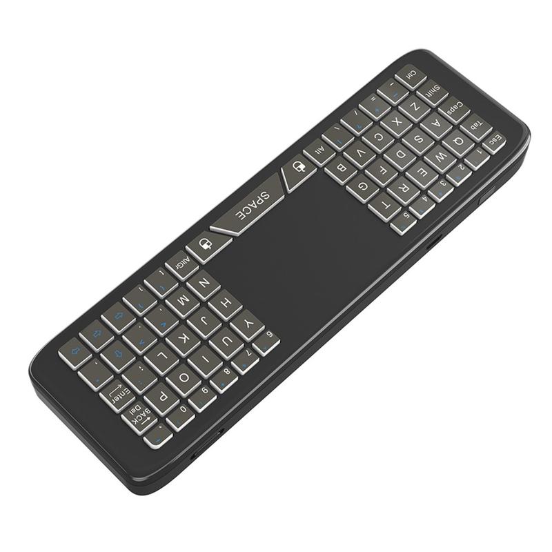 Zintegrowana mini klawiatura z 98 klawiszami sprawia, że wprowadzanie tekstu jest szybkie i wygodne — idealne do wyszukiwania, wpisywania haseł, czatowania lub przeglądania stron internetowych na telewizorach Smart TV i urządzeniach multimedialnych.