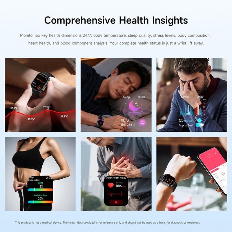 Inteligentny zegarek GE52 łączy zaawansowane monitorowanie zdrowia z nowoczesną wygodą, oferując pomiar EKG, śledzenie tętna, wykrywanie tlenu we krwi, monitorowanie temperatury i wiele więcej - wszystko to z nadgarstka. Jego duży 1,88-calowy wyświetlacz HD zapewnia wyraźne, żywe obrazy, które przewyższają tradycyjne 1,7-calowe ekrany, dzięki czemu codzienne użytkowanie jest wyraźniejsze i przyjemniejsze.