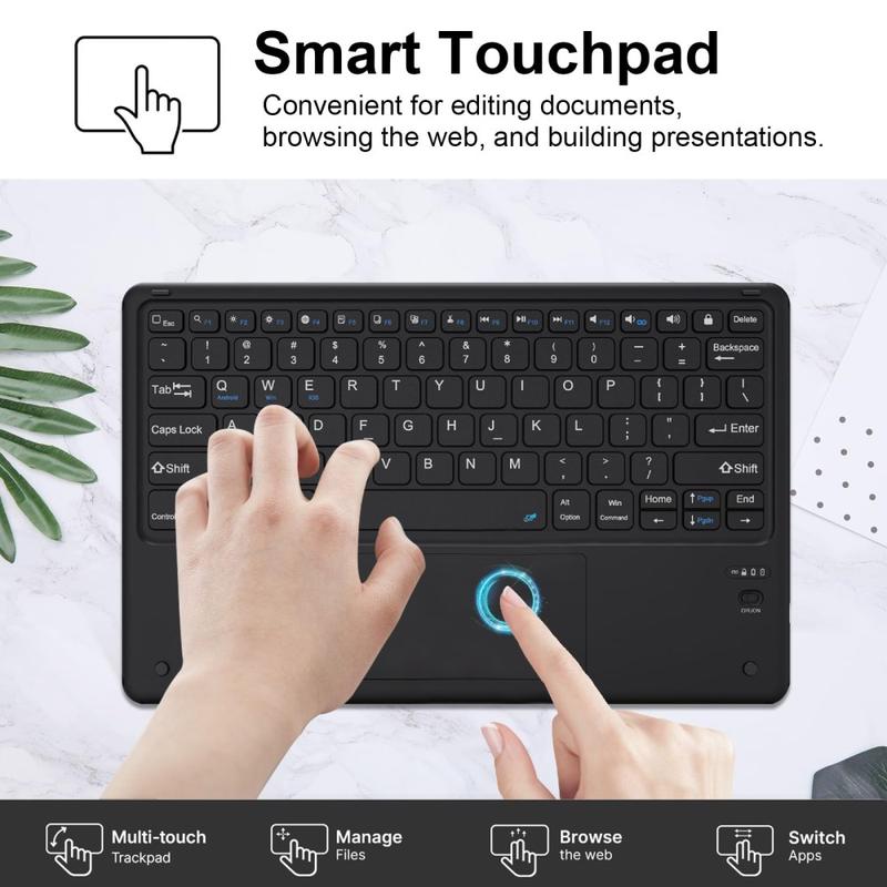 - The Bluetooth keyboard also has QWERTY layout and built-in rechargeable battery