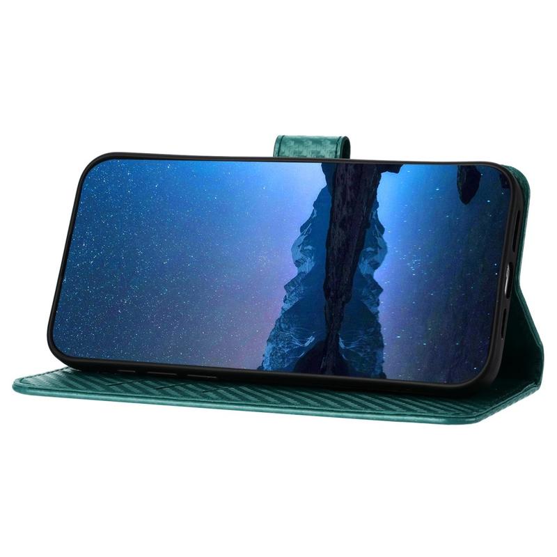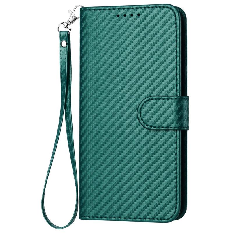Etui portfelowe premium z paskiem do iPhone 15 Pro - tekstura włókna węglowego