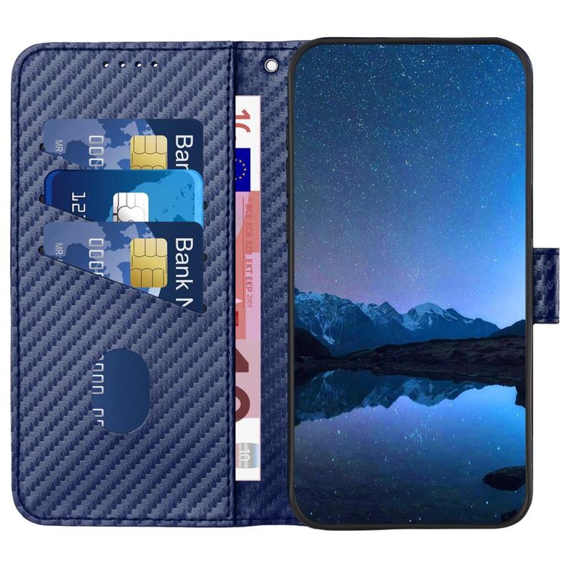 To etui portfelowe oferuje elegancki wygląd, niezawodną ochronę i inteligentną użyteczność. Teksturowane wykończenie z włókna węglowego dodaje nowoczesnego, profesjonalnego wyglądu, a wewnętrzna warstwa TPU pochłania wstrząsy spowodowane przypadkowymi upadkami. Dzięki funkcji zestawu głośnomówiącego i odpinanemu paskowi zapewnia wygodę i wszechstronność.