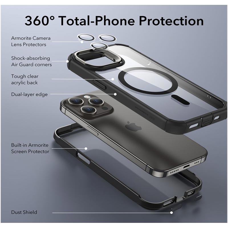 - Wysokiej jakości etui ESR Armor Tough Kickstand HaloLock do iPhone'a 15 Pro Max