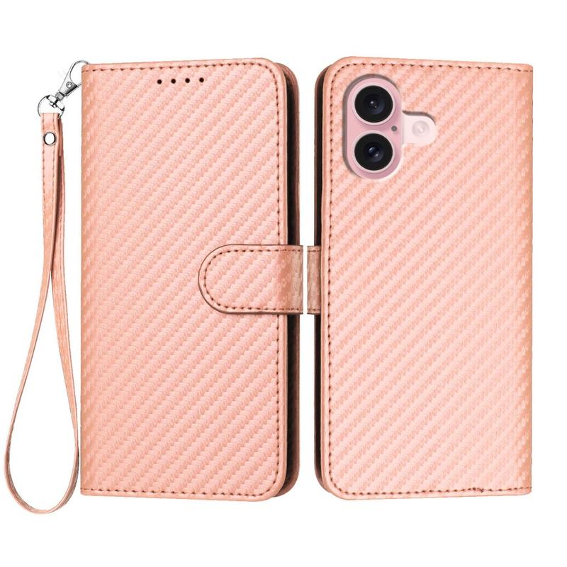 Etui portfelowe premium z paskiem do iPhone 16 - tekstura włókna węglowego
