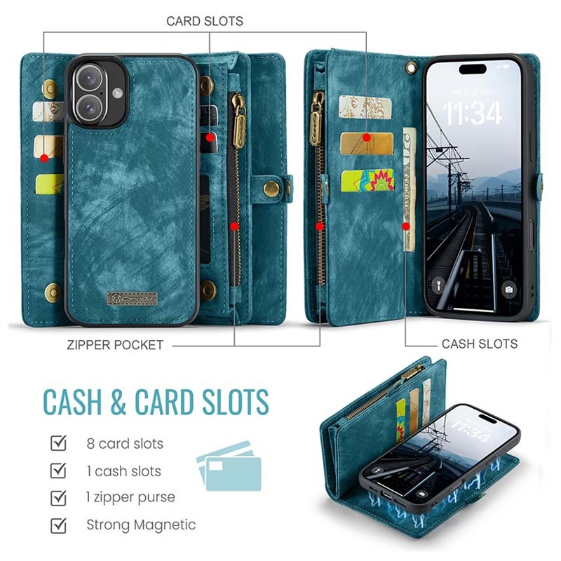 Wielofunkcyjny Pokrowiec-Portfel Caseme 008 2-w-1 na iPhone 16 Plus