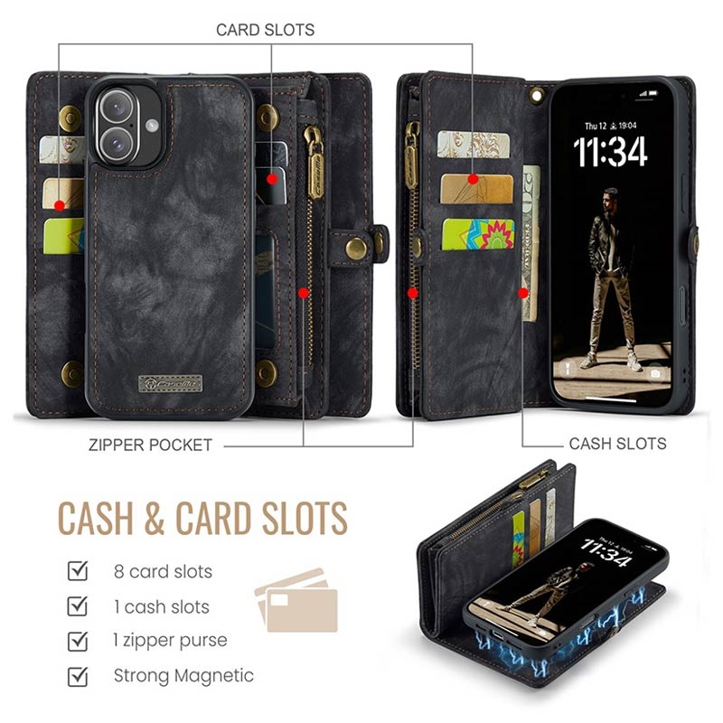 Wielofunkcyjny Pokrowiec-Portfel Caseme 008 2-w-1 na iPhone 16 Plus