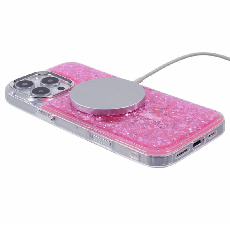 Etui epoksydowe z brokatem i cekinami kompatybilne z MagSafe do iPhone 16 Pro