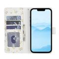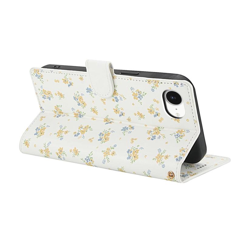 Etui na portfel z rombowym wzorem kwiatowym do iPhone 16e - z paskiem i kieszeniami na karty