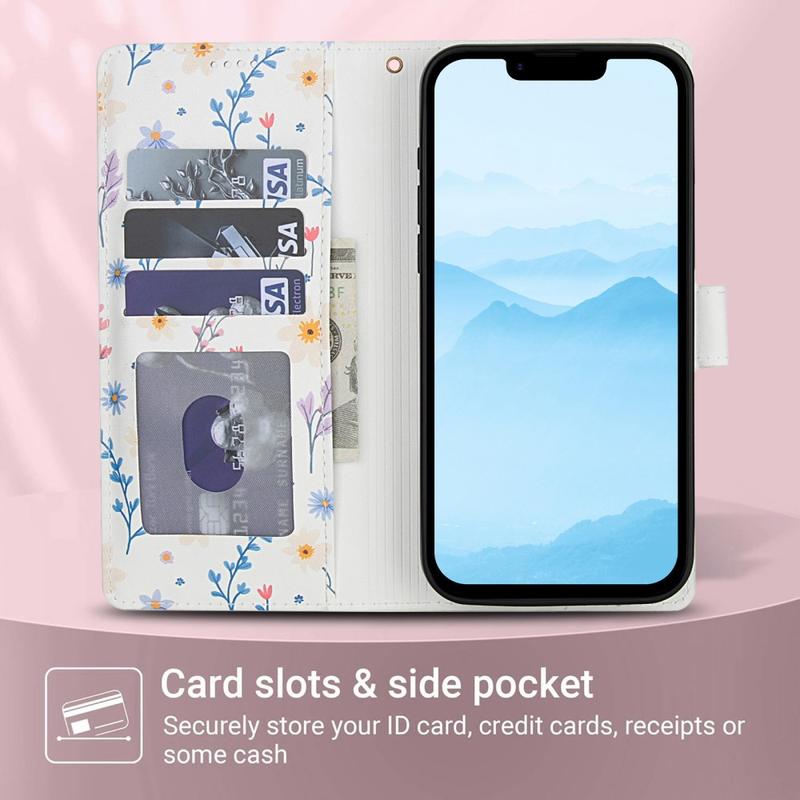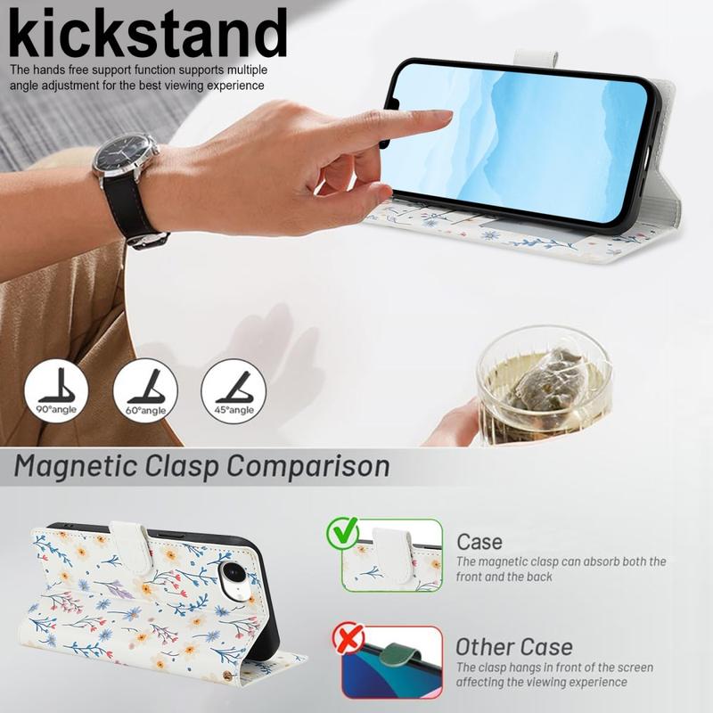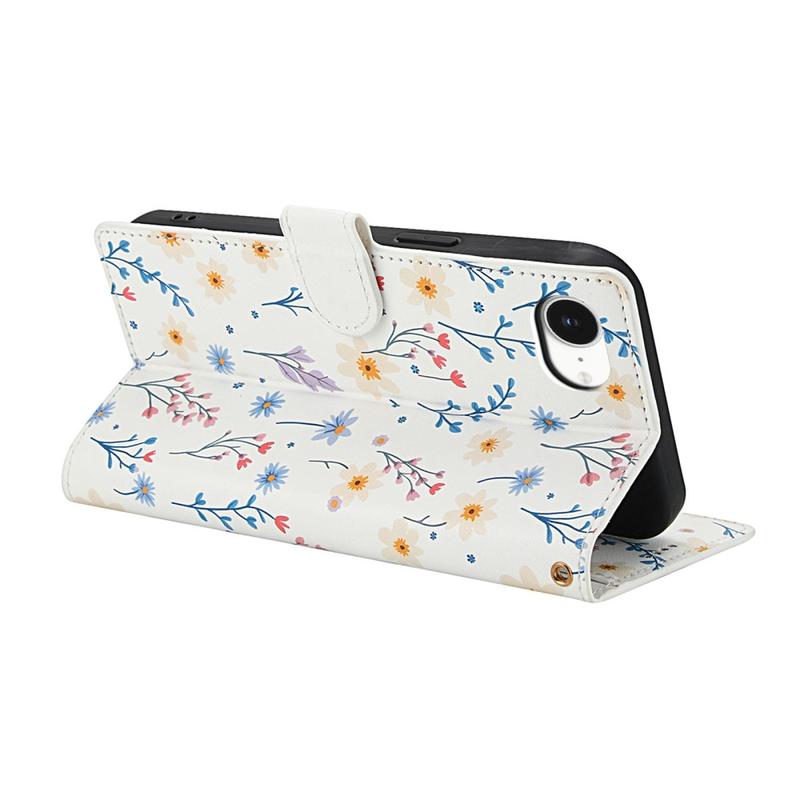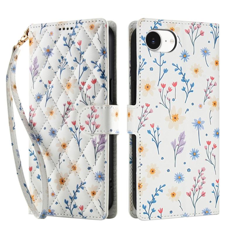 Etui na portfel z rombowym wzorem kwiatowym do iPhone 16e - z paskiem i kieszeniami na karty