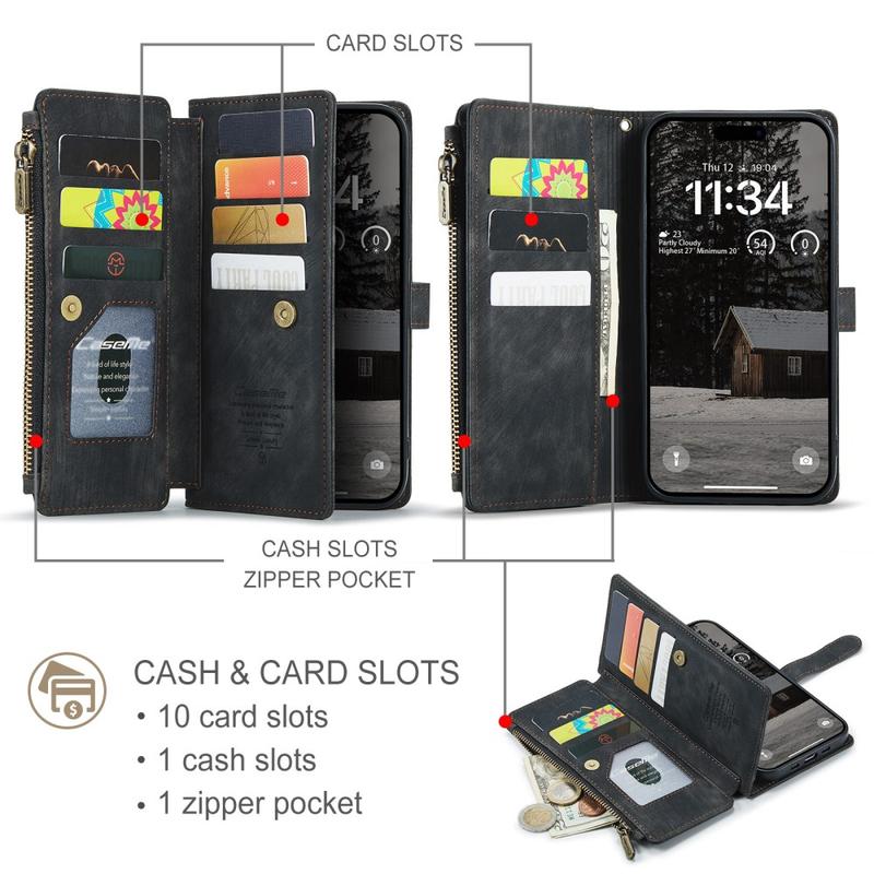 Wielofunkcyjne etui z portfelem Caseme C30 na iPhone Air zapewnia niezrównaną, pełną ochronę i wyjątkowy, ekskluzywny wygląd. To eleganckie etui wykonano z wysokiej klasy poliuretanu i wzmocniono odporną na wstrząsy, wewnętrzną osłoną z TPU, która ściśle otula Twój iPhone Air. Etui-portfel Caseme C30 ma kilka przegródek na karty, sporą, wewnętrzną kieszonkę na pieniądze oraz zamykaną na zamek, zewnętrzną kieszeń, a wszystko zabezpieczone zamknięciem na magnes.