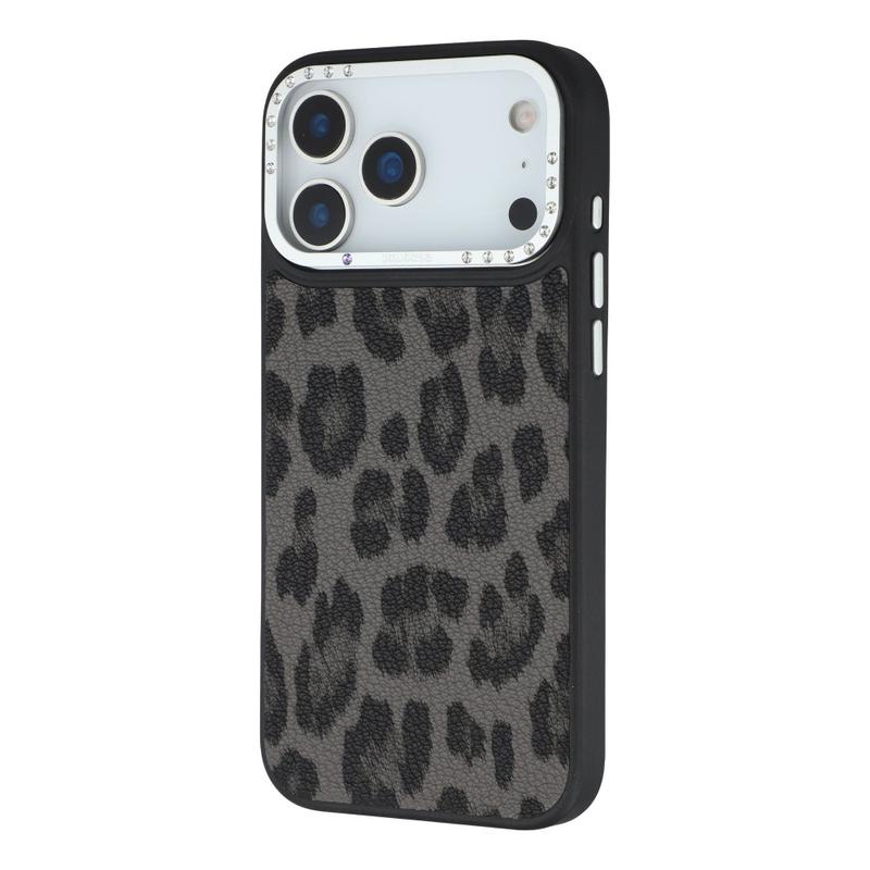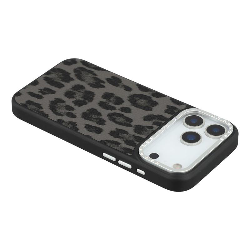 Jaucase hybrydowe etui magnetyczne z nadrukiem w panterkę dla iPhone 17 Pro Max - PU + TPU + PC z ramką z kryształu górskiego