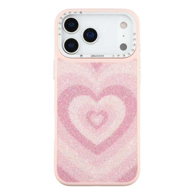 Jaucase Heart Pattern Magnetic Hybrid Case dla iPhone 17 Pro Max - poliuretan + TPU + PC z ramką z kryształkami górskimi