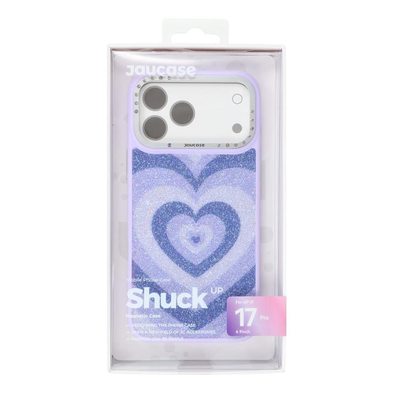 Jaucase Heart Pattern Magnetic Hybrid Case dla iPhone 17 Pro - poliuretan + TPU + PC z ramką z kryształkami górskimi