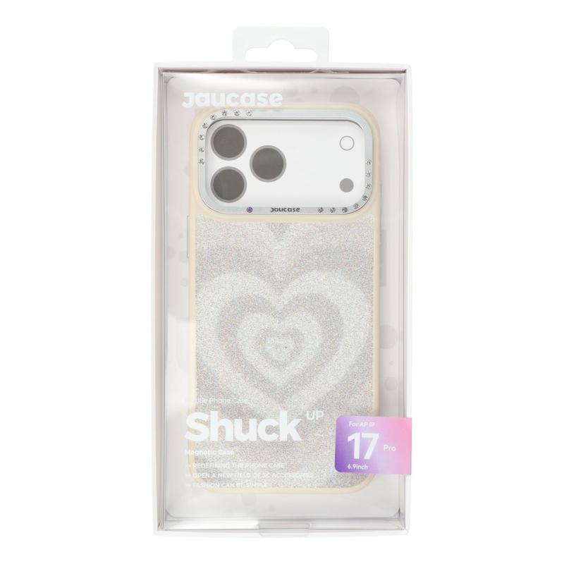 Jaucase Heart Pattern Magnetic Hybrid Case dla iPhone 17 Pro - poliuretan + TPU + PC z ramką z kryształkami górskimi
