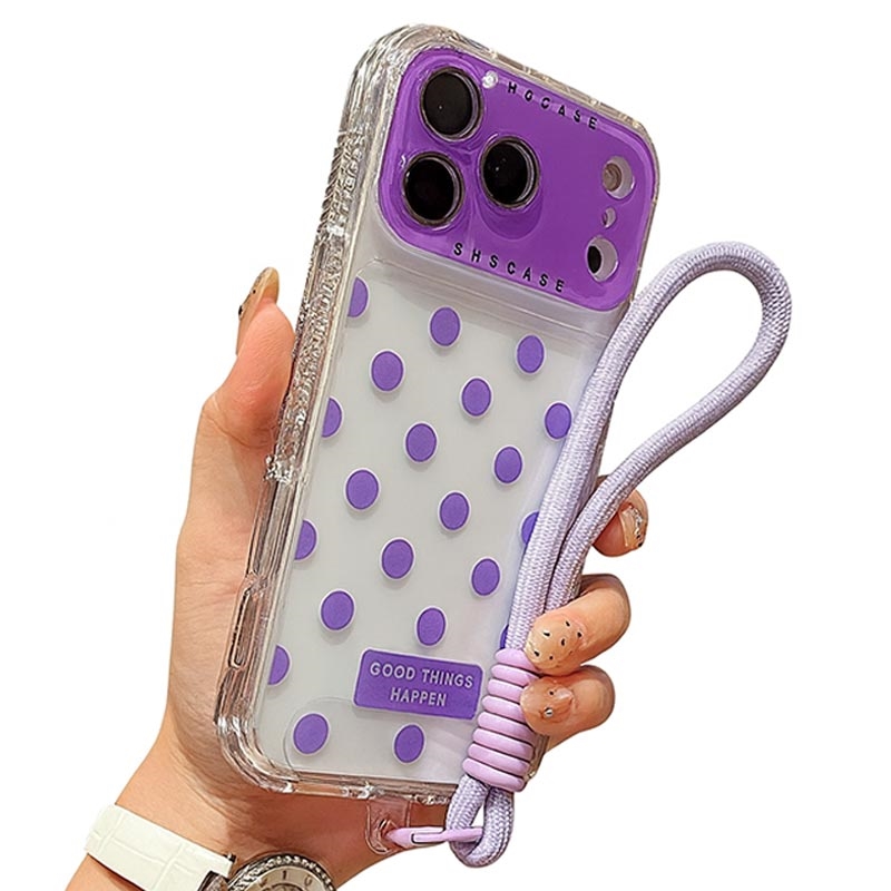 - Specyfikacja - Materiał: TPU + PC | Kompatybilność: iPhone 17 Pro | Styl: Przezroczysty z kropkami | Akcesoria: Etui + Folia na obiektyw + Pasek.