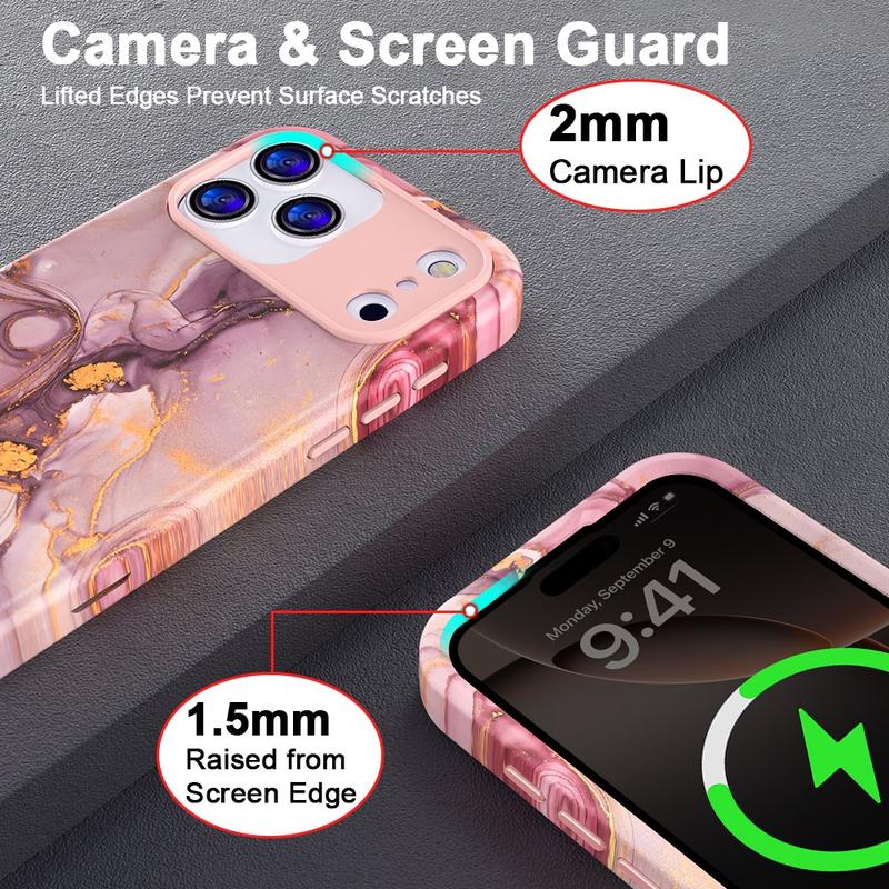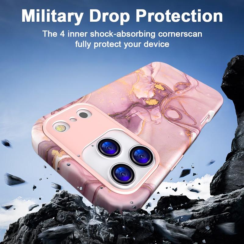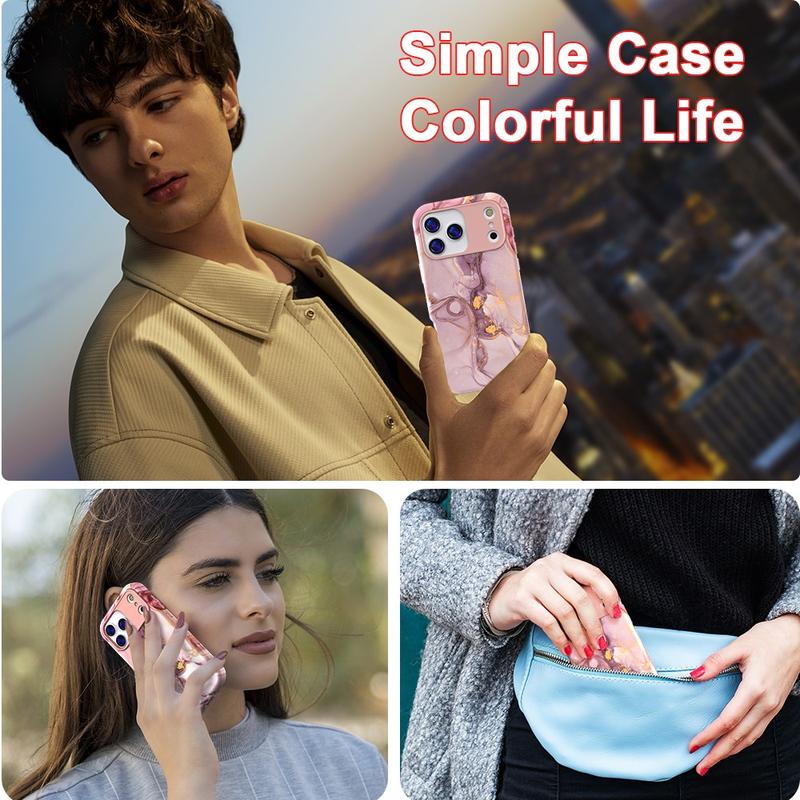 Luksusowa hybrydowa obudowa z marmuru do iPhone 17 Pro - stylowy, odporny na wstrząsy pokrowiec na telefon z PC i TPU z ochroną aparatu