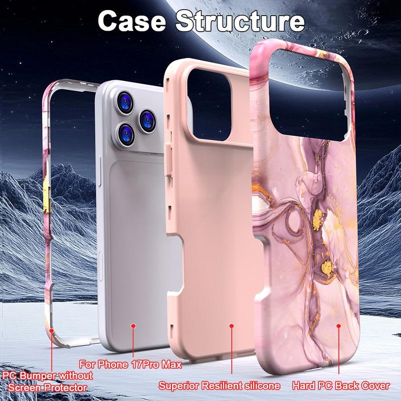 Luksusowa hybrydowa obudowa z marmuru do iPhone 17 Pro Max - stylowy, odporny na wstrząsy pokrowiec na telefon z PC i TPU z ochroną aparatu