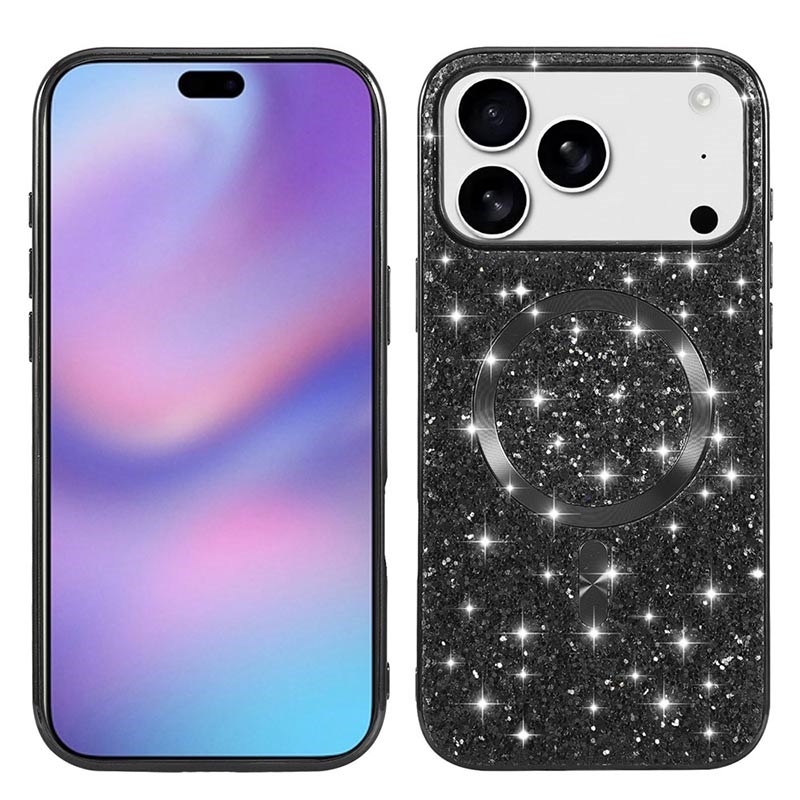 Hybrydowe etui z galwanizowanym brokatem do iPhone 17 Pro - kompatybilne z MagSafe - galwanizowana ramka z TPU i tylna obudowa z PC