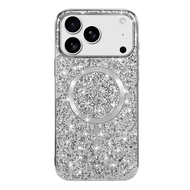Hybrydowe etui z galwanizowanym brokatem do iPhone 17 Pro - kompatybilne z MagSafe - galwanizowana ramka z TPU i tylna obudowa z PC