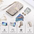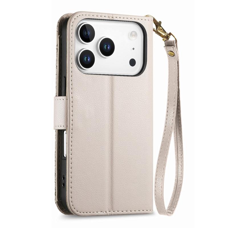 Etui na portfel z wzorem kwiatów i liści, kieszenią na suwak i paskiem na nadgarstek do iPhone 17 Pro