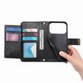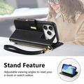 Etui na portfel z wzorem kwiatów i liści, kieszenią na suwak i paskiem na nadgarstek do iPhone 17 Pro Max