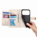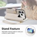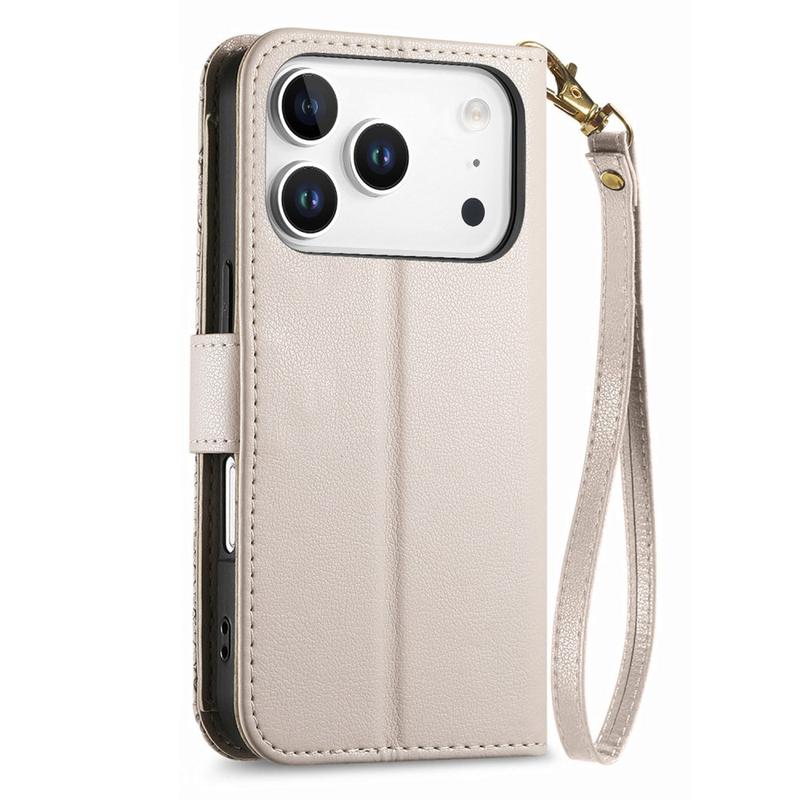 Etui na portfel z wzorem kwiatów i liści, kieszenią na suwak i paskiem na nadgarstek do iPhone 17 Pro Max