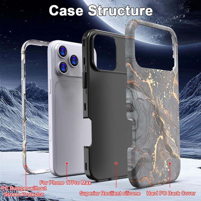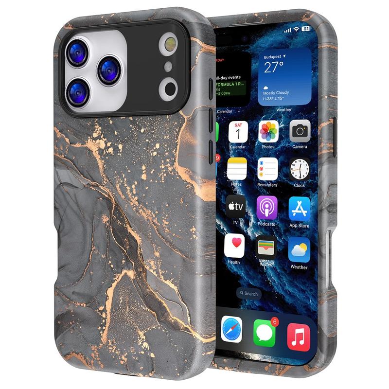 Luksusowa hybrydowa obudowa z marmuru do iPhone 17 Pro Max - stylowy, odporny na wstrząsy pokrowiec na telefon z PC i TPU z ochroną aparatu