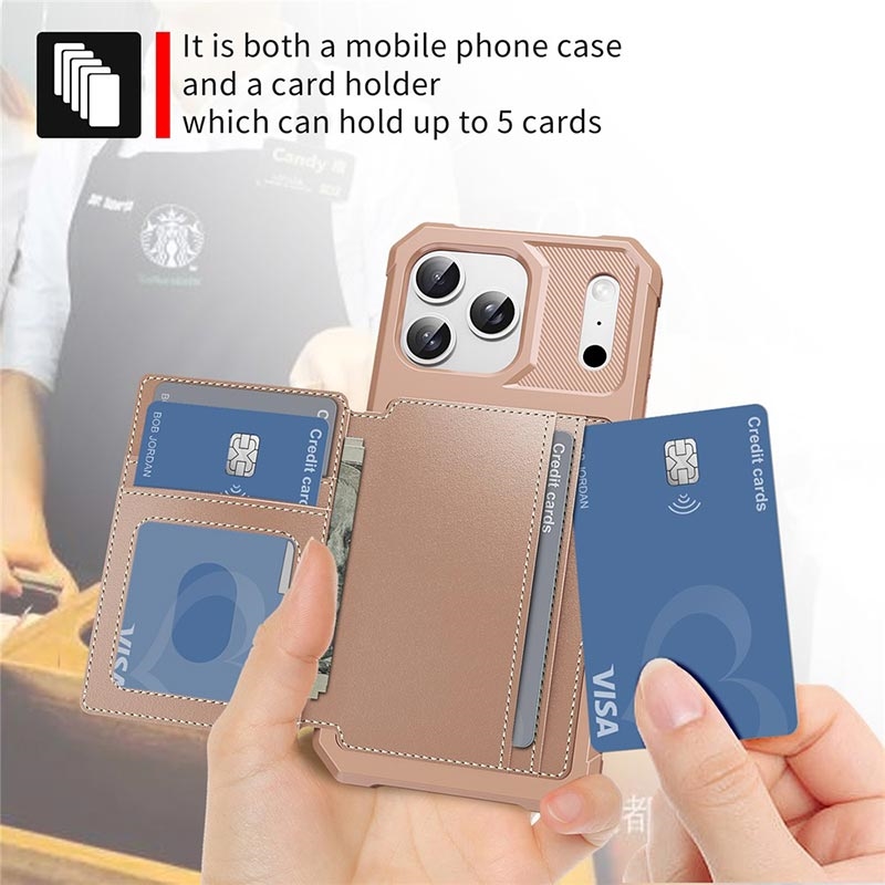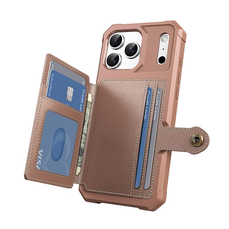 - Etui-portfel na iPhone 17 Pro Max z bezpiecznym zatrzaskiem, panelem portfelowym i kilkoma przegródkami na karty i kieszonką na gotówkę