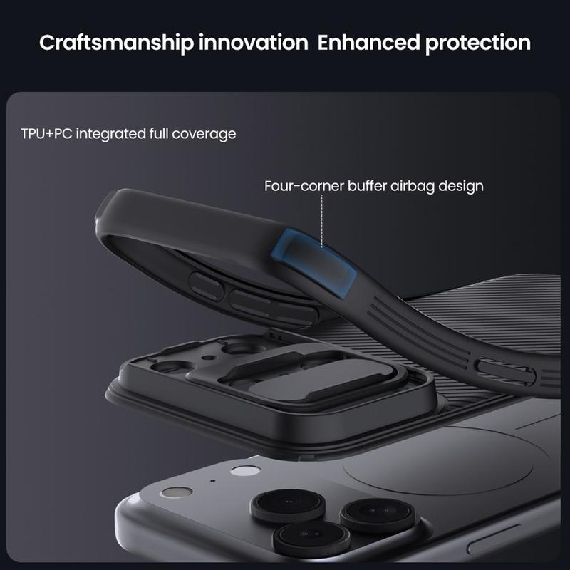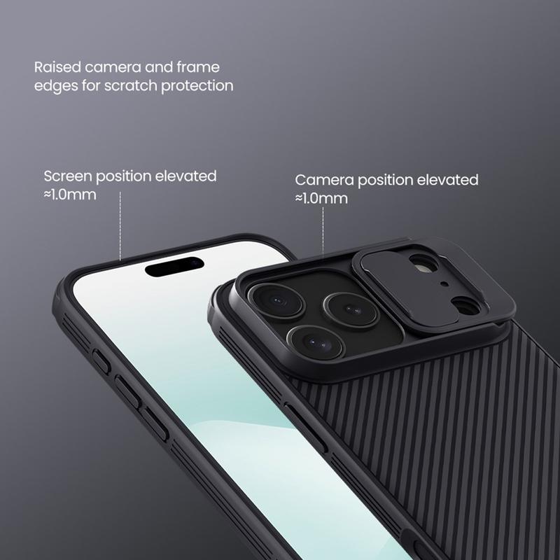 Ciesz się dodatkową prywatnością i ochroną dzięki hybrydowemu etui Nillkin CamShield Pro. Łącząc sztywny plastik i TPU, osłona aparatu zapobiega zadrapaniom, jednocześnie chroniąc iPhone 17 Pro Max przed codziennym zużyciem.