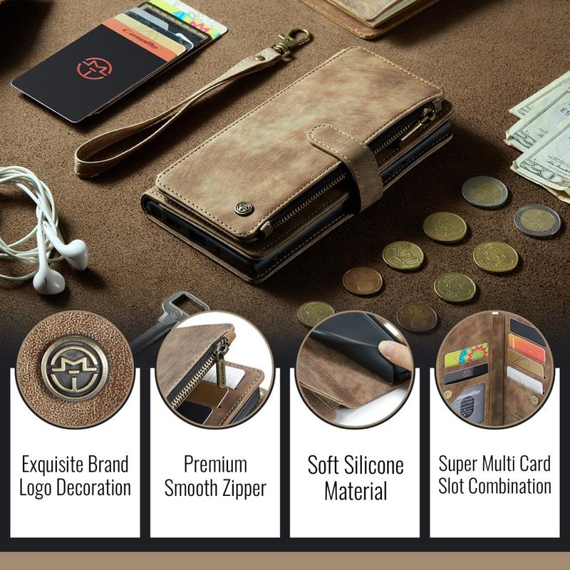 Wielofunkcyjne etui z portfelem Caseme C30 na iPhone 17 Pro zapewnia niezrównaną, pełną ochronę i wyjątkowy, ekskluzywny wygląd. To eleganckie etui wykonano z wysokiej klasy poliuretanu i wzmocniono odporną na wstrząsy, wewnętrzną osłoną z TPU, która ściśle otula Twój iPhone 17 Pro. Etui-portfel Caseme C30 ma kilka przegródek na karty, sporą, wewnętrzną kieszonkę na pieniądze oraz zamykaną na zamek, zewnętrzną kieszeń, a wszystko zabezpieczone zamknięciem na magnes.