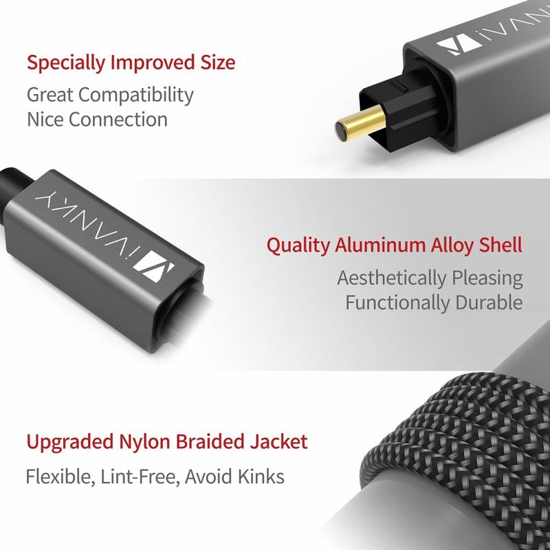 IVANKY OC03 Tkany nylonowy kabel światłowodowy Toslink - 3-metrowy cyfrowy kabel audio HiFi do kina domowego / telewizora / PS4 / Xbox / Freebox