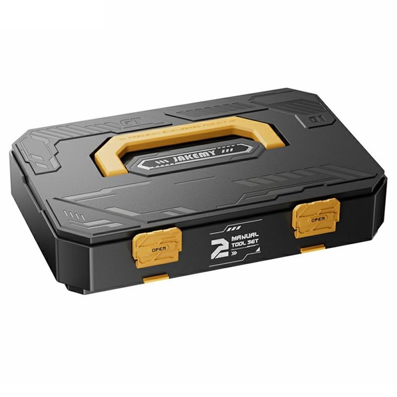 Zestaw narzędzi do napraw domowych JAKEMY JM-8199 257 w 1 to kompletne rozwiązanie do konserwacji w gospodarstwie domowym, projektów DIY i profesjonalnych napraw. Modułowa konstrukcja pozwala na dostosowanie kombinacji do różnych scenariuszy napraw, dzięki czemu jest bardzo wszechstronny. Dołączony wkrętak ręczny 2 w 1 obsługuje bity H4.0 i H6.3 bez adapterów i jest wyposażony w dwufunkcyjne złącze do szybkiego wkładania zaślepek. Ergonomiczna rękojeść zwiększa moment obrotowy o 20%, zapewniając do 5 Nm wydajności. Dzięki wygodnemu schowkowi na bity i przenośnej konstrukcji, ten zestaw narzędzi zapewnia gotowość do wykonania każdego zadania naprawczego w domu lub w podróży.