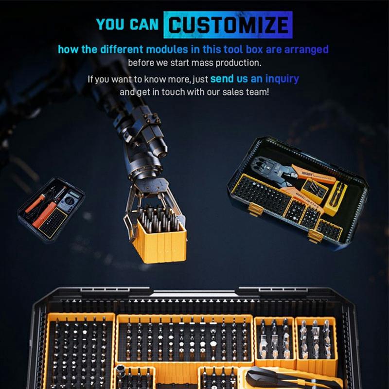 Jakemy JM-8199 Zestaw narzędzi do napraw domowych 257 w 1 - modułowy zestaw śrubokrętów z ergonomiczną rękojeścią i przenośnym schowkiem