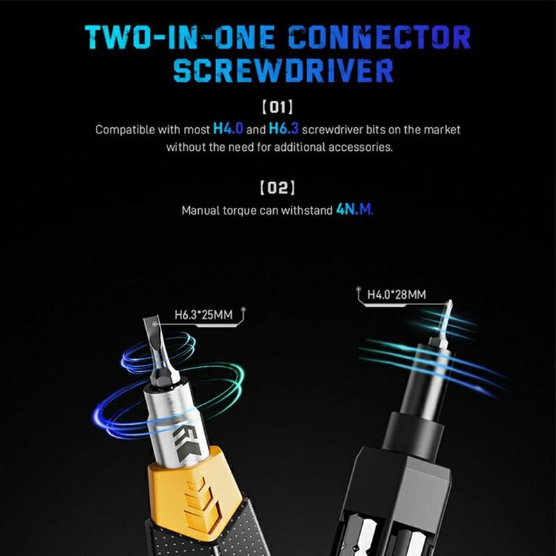 - Wkrętak 2 w 1 - dwufunkcyjne złącze kompatybilne z bitami H4.0 i H6.3 bez adapterów.