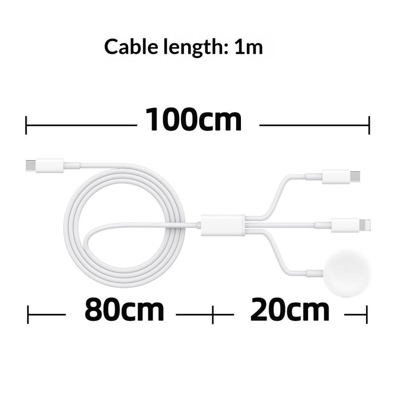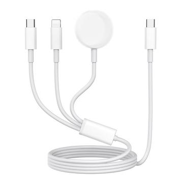 Kabel ładujący 3 w 1 USB-C do USB-C, Lightning, bezprzewodowa ładowarka Apple Watch - 1m