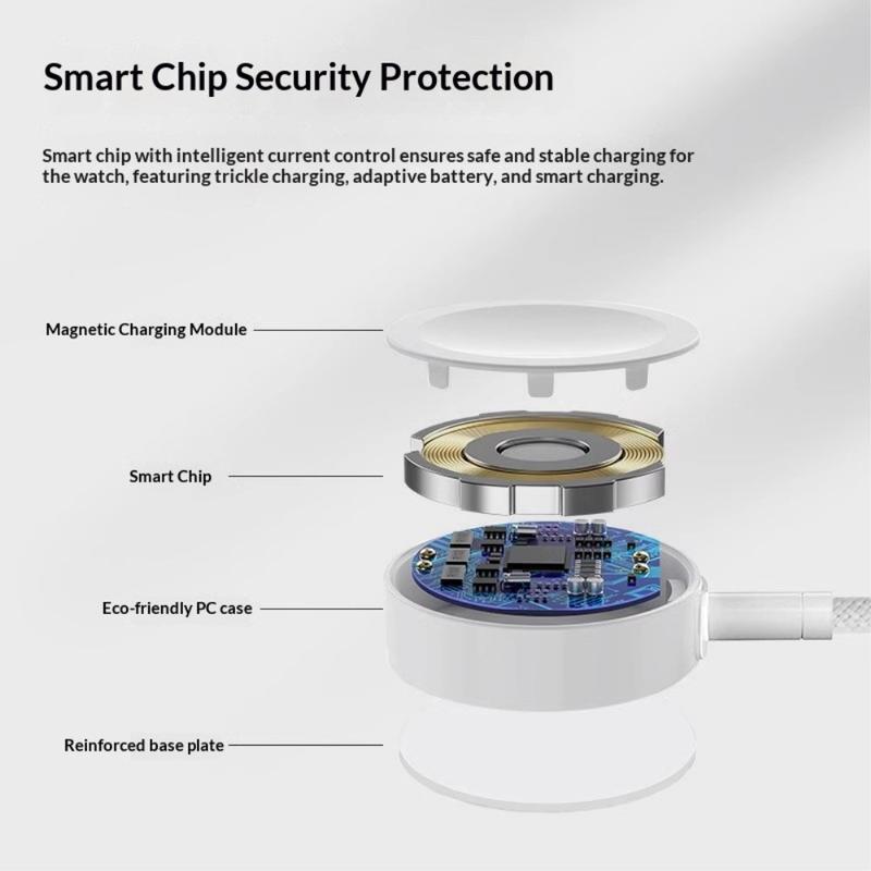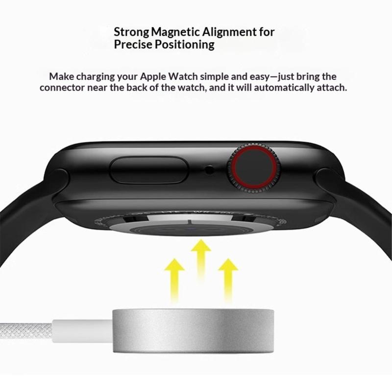 Magnetyczna konstrukcja ładowania umożliwia łatwe dopasowanie do kompatybilnych urządzeń. Wystarczy umieścić zegarek Apple Watch na ładowarce, a ta zatrzaśnie się we właściwej pozycji, zapewniając stabilny kontakt i wydajny transfer energii.