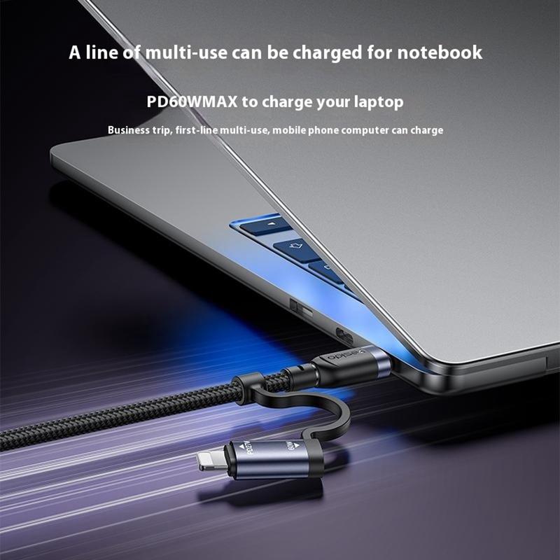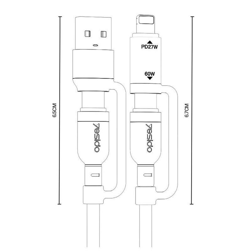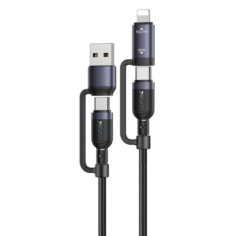 Kabel ładujący Yesido CA200 4 w 1 - USB-A / USB-C do USB-C, Lightning (8-pinowy) pleciony kabel do szybkiego ładowania, do 60 W, 1,2 m