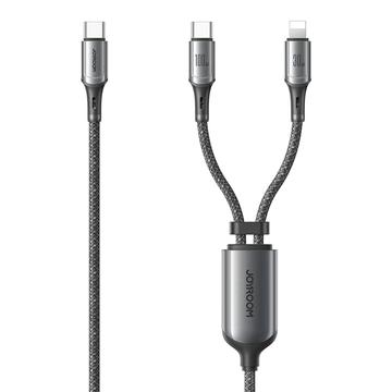 Kabel do ładowania Joyroom S-A57 100W 2 w 1 - USB-C do USB-C + podwójne złącze Lightning, synchronizacja danych 480 Mb/s, nylonowy oplot