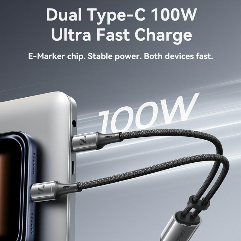 Ładuj dwa urządzenia USB-C jednocześnie za pomocą kabla JOYROOM S-A57 USB-C do podwójnego USB-C. Zbudowany z myślą o nowoczesnych laptopach, tabletach i smartfonach, obsługuje szybkie ładowanie do 100 W i wykorzystuje inteligentny układ zarządzania E-Marker, aby zapewnić stabilne zasilanie kompatybilnych urządzeń. Kabel zapewnia również transfer danych 480 Mb/s do codziennej synchronizacji, więc jeden przewód obejmuje zarówno ładowanie, jak i przesyłanie plików. Wytrzymała, 48-żyłowa nylonowa plecionka jest odporna na ścieranie i codzienne zginanie, a dołączona opaska do organizowania kabli utrzymuje porządek na biurku lub w torbie. Dzięki przetestowanym cechom wytrzymałościowym, takim jak ponad 10 000 włożeń i nośność 7 kg, jest on przeznaczony do częstego użytkowania.