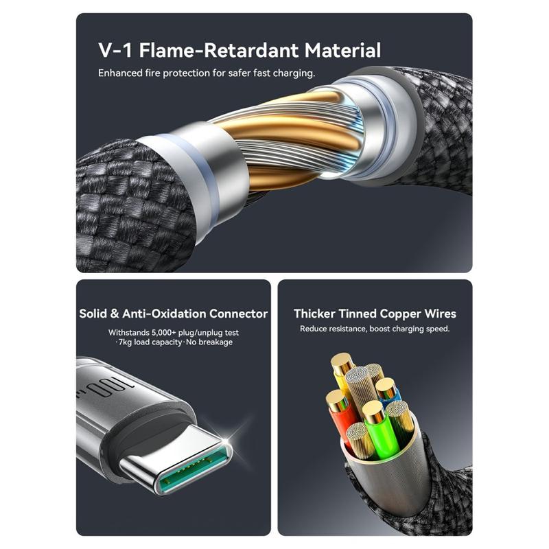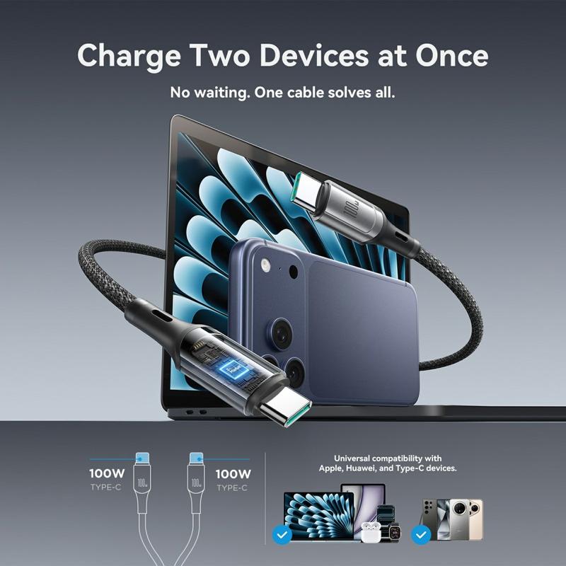 Jeśli korzystasz z wielu urządzeń USB-C, ten kabel zmniejszy bałagan i ułatwi ładowanie. Zapewnia on wysoką moc 100 W, inteligentne zarządzanie energią i wytrzymałą plecioną konstrukcję zaprojektowaną z myślą o codziennym użytkowaniu, a także poręczną opaskę z organizerem ułatwiającą przechowywanie.