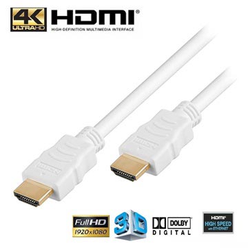 Kabel HDMI High Speed - Biały z dwoma rdzeniami