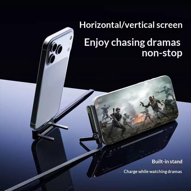 Ładuj, graj i wykonuj wiele zadań jednocześnie w bardziej komfortowy sposób dzięki temu kablowi USB-C do USB-C z wbudowaną składaną podstawką do telefonu, umożliwiającemu szybkie ładowanie pod kątem 90 stopni. Zaprojektowany z myślą o ładowaniu USB-C Power Delivery o dużej mocy, do 240W, zapewnia stabilne zasilanie kompatybilnych telefonów, tabletów i laptopów. Kątowe złącze zmniejsza naprężenie kabla i nie przeszkadza podczas grania, a zintegrowana podstawka umożliwia oglądanie zarówno w orientacji pionowej, jak i poziomej, co pozwala na korzystanie z urządzenia bez użycia rąk przy biurku lub w podróży.